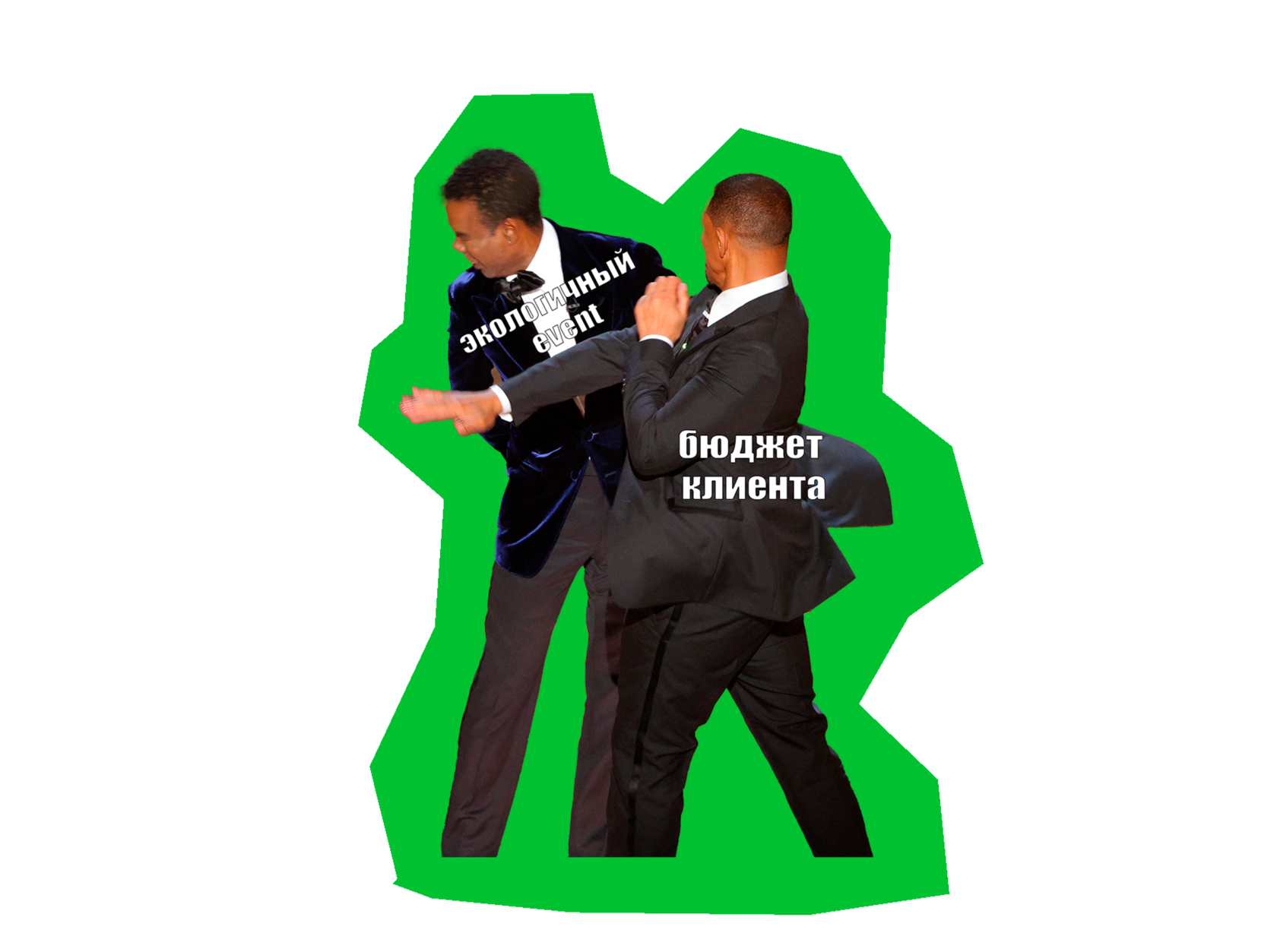 Клиент боится, что отсутствие избытка еды или декораций значит для участников, что компания на них экономит, нет бюджета. И в этом триггере важно информировать гостей о концепции, о том, что потреблять меньше — это не жадность, а экокультура.